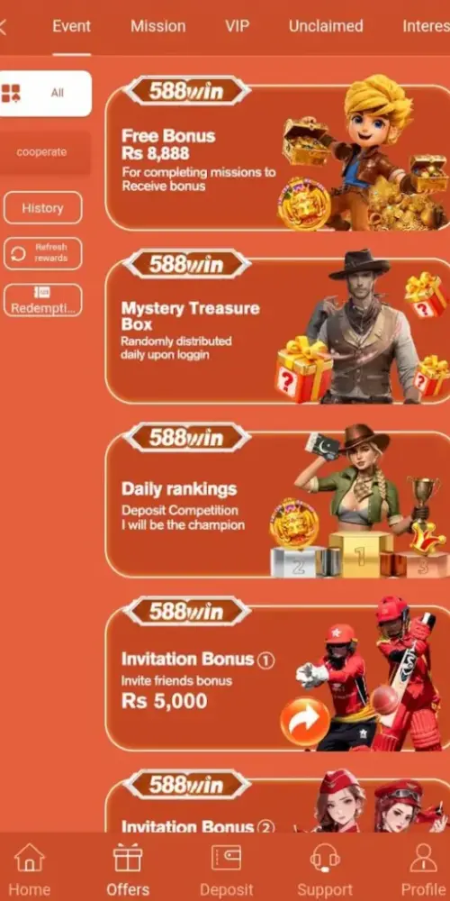 The colors in 588win Game are bright, icons are clean, and the buttons are easy to use. The layout is pleasant to the eye, and any player can play.
