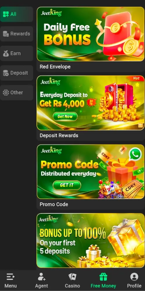 There are different types of mini-games, card games, and lucky games available on JeetKing Game. This adds variety to the game, and users can have a lot of fun. In addition to entertainment, users are provided with opportunities to win rewards, coins, and cash, which makes the game all the more interesting.