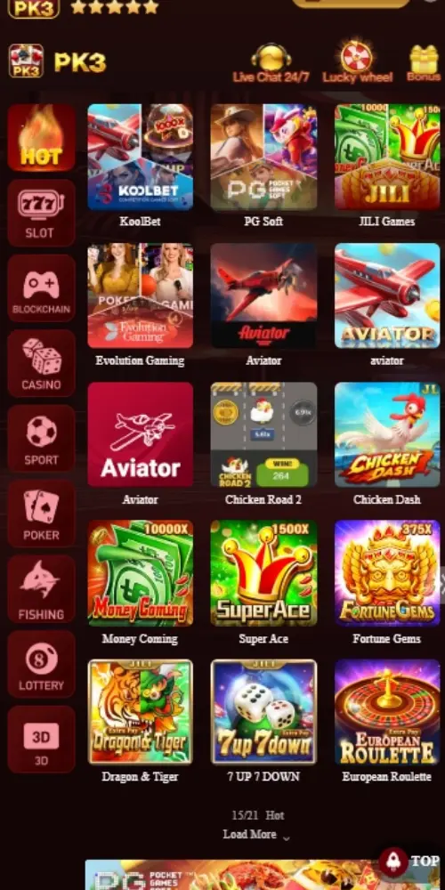 PK3 Game has a clean and simple layout that is easy to understand, even for new users. You can quickly find games, rewards, wallet, and events without any confusion.