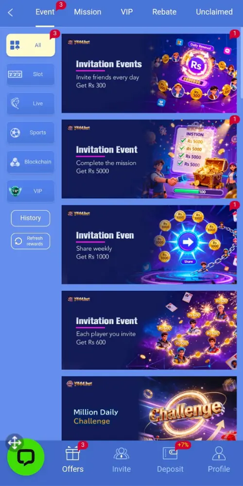 Y444Bet Game rewards users daily with free coins for logging in. This encourages regular activity and provides extra earning chances.
