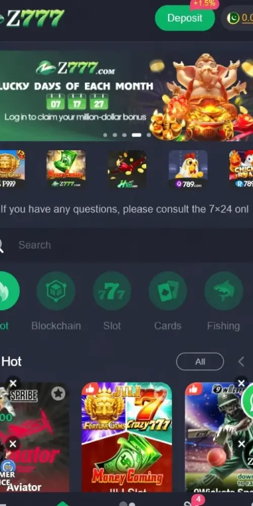 Z777 Game has a clean and simple design that is easy for everyone to use. All options like games, wallet, and rewards are clearly visible on the screen. Beginners can quickly understand the app without any confusion.